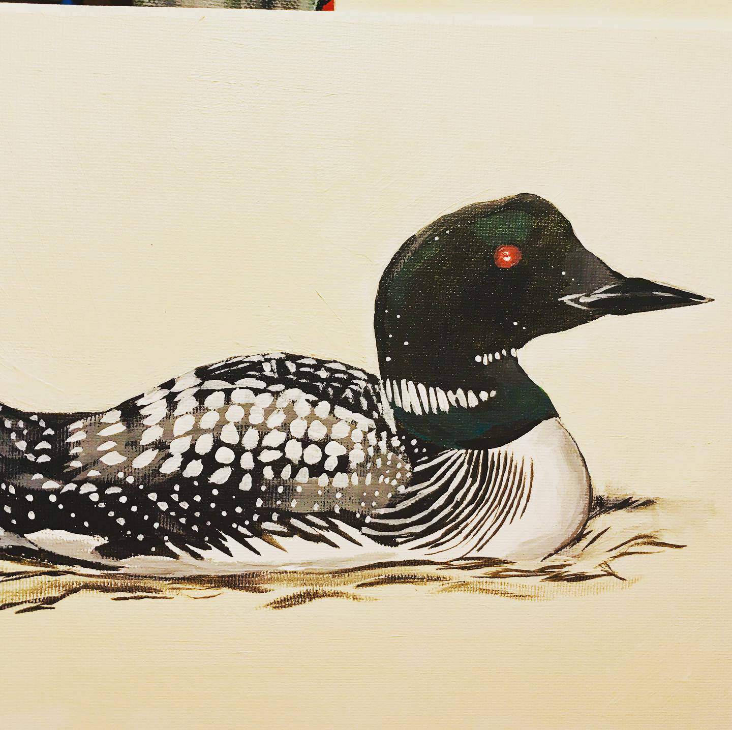 These physical paintings of birds were done for a friend of my mom's. Due to a miscommunication, I ended up doing them over. I was given the task of 'A Grosbeak, an Oriole, and a Loon.' But I didn't receive the second half of the message that said, 'I want them isolated on the canvas, and the background to match my house!'